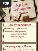 Ang karapatang pang indibidwal ay nahahati sa. Ang pagkakamit ng tao ng mga pangangailangan niya tulad ng pagkain. Ang mga sumusunod ay ibat ibang mga isyu na may kaugnayan sa karapatang pantao hango sa lektura ni Propesor Jensen DG.